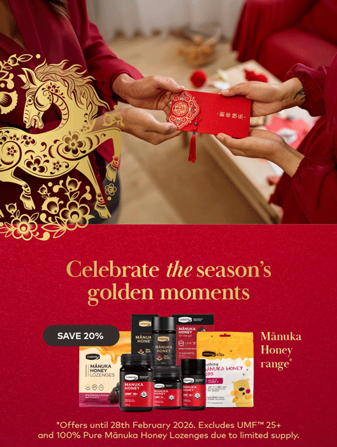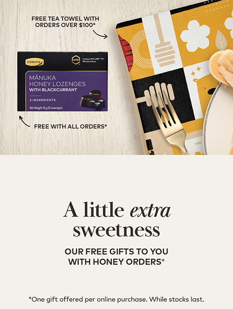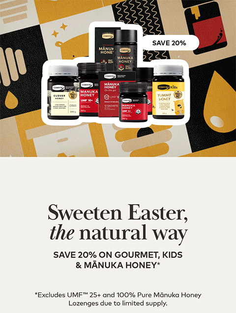 Packed with over 2,000 natural bioactive compounds, Mānuka Honey supports your gut and immune health, and is proven to heal. Our Mānuka Honey is four factor tested to meet stringent UMFᵀᴹ standards for potency, authenticity, freshness and shelf life. The higher the UMFᵀᴹ level the more potent the honey. Comvita guarantees the UMFᵀᴹ level in every spoonful of our Mānuka Honey!